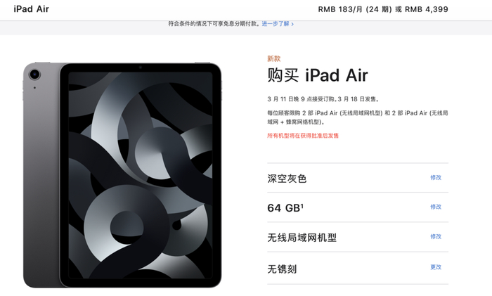 但如果你使用 iPad 更在乎性能,iPad Air 的起售价比之前更低,64G 版本是 4399 元起。