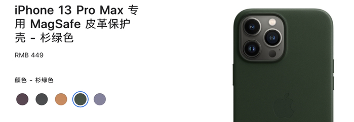 这不是苹果第一次推出绿色 iPhone,之前的 iPhone 11 Pro 系列,苹果推出过暗夜绿,已经在苹果官网消失的 iPhone 5c,也用过更青翠的绿色。和现在的苍岭绿 iPhone 13/13 Pro 相配合的苹果官方保护壳中,还有桉叶绿/苜蓿草/杉绿 三种配色。