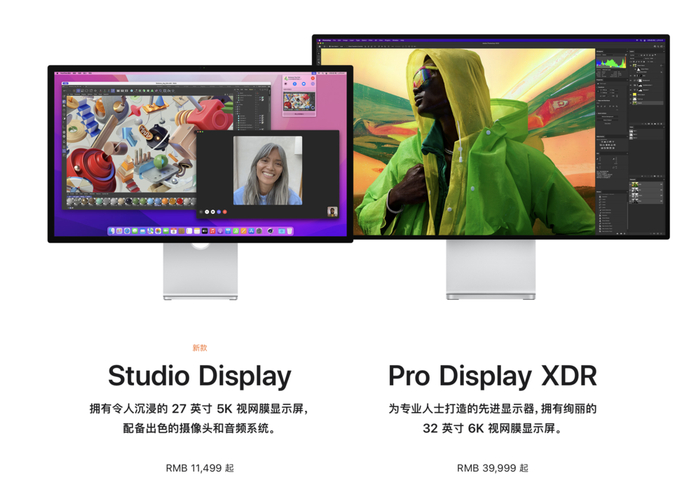 对比之前推出的,起售价高达 4 万的 Pro Display XDR,Studio Display 11499 元的起售价更低。参数也降低到 27寸,5K 分辨率。