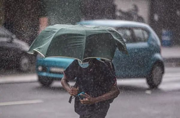 3月1日,在澳大利亚悉尼,一名男子在雨中出行。图:新华社