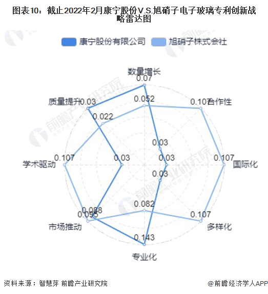 整体来看,康宁股份在数量增长、专业化、质量提升方面均优于旭硝子,其余方面如合作性、学术驱动、多样化等方面均无优势。