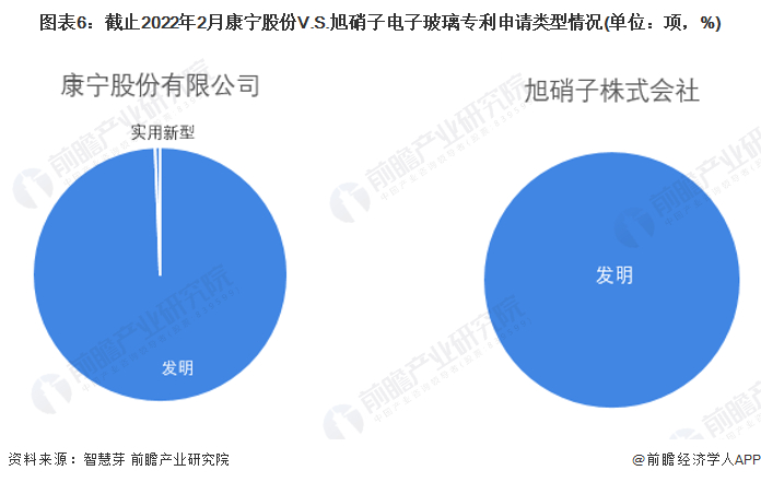 (4)专利类型对比:康宁股份发明和实用新型专利领先