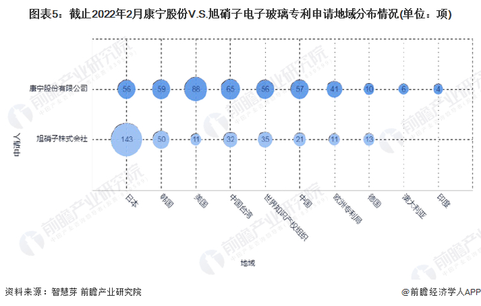 (3)专利申请地域对比:康宁股份全球化布局领先
