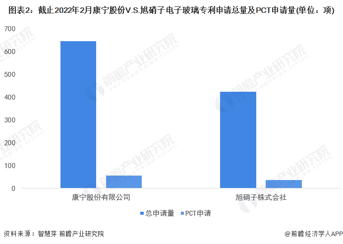 (1)专利申请量及PCT申请量对比:康宁股份全面占优