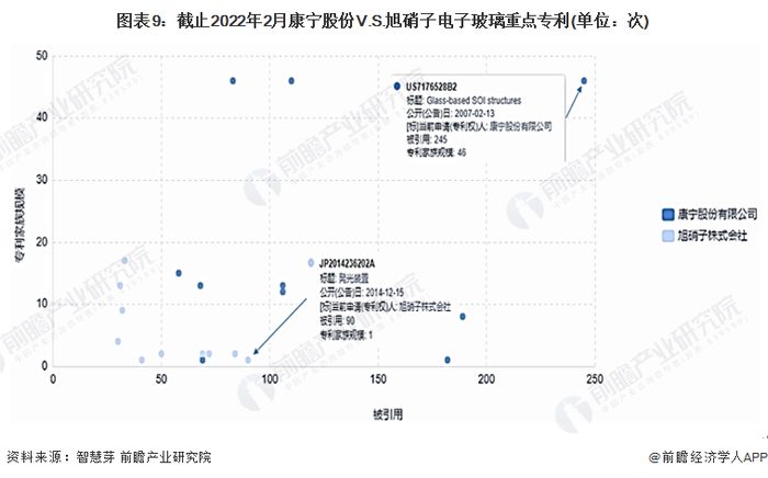(6)重点专利布局对比:康宁股份重点布局的专利被引用次数较多