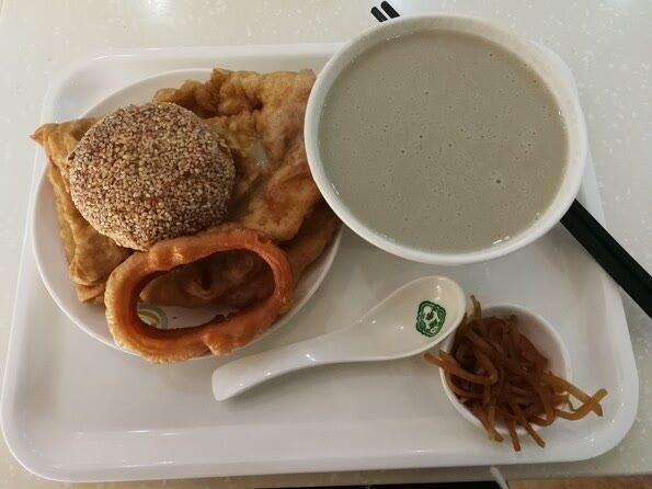 如果实在觉得豆汁无法接受,可以尝试与焦圈和咸菜搭配,这也是老北京喝豆汁的绝配。焦圈是油性重的碳水食品,最能克制豆汁的桀骜。辣咸菜味重,浓香扑鼻,盖过了豆汁的馊味。如果还是觉得单一,可以来点芝麻烧饼、面茶、驴打滚等一众老北京小吃。