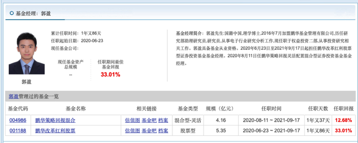 青岛沐丰禾私募则成立于2021年2月,注册资本500万元。这家机构的法定代表人、总经理郭盈2016年加入鹏华基金,并在2020年开始担任鹏华改革红利股票、鹏华策略回报混合的基金经理。2021年11月,他离开鹏华,并在当年底出资参与设立青岛沐丰禾私募、担任总经理,成为“公奔私”大潮中的一员。