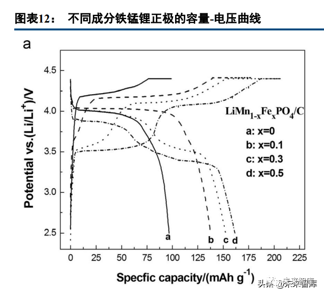 即便如此,对可能同时具备磷酸铁锂、磷酸锰锂优点的正极材料——磷酸铁锰锂(亦称磷酸锰铁锂,本文 不作区分)的研究与应用尝试从从未停止。