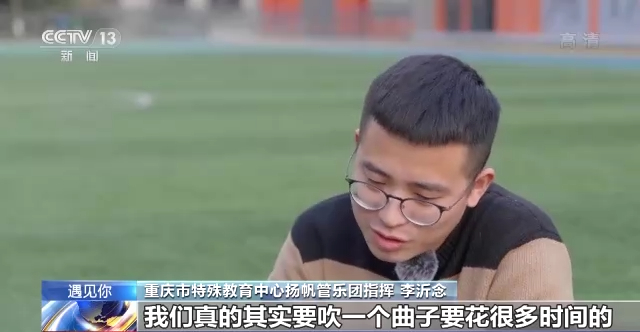 重庆市特殊教育中心扬帆管乐团指挥 李沂念:他当时也想放弃,他说想去学萨克斯,我说不准,就逼着练。只要我有时间,下班以后或者中午,或者下午三四节课没有正课的时候,就他们自习课的时候,我就会拉他出来练,相当于叫开小灶。