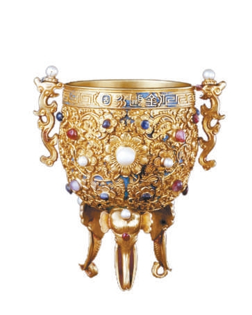 制作于乾隆六十二年(1797年)的金瓯永固杯,其工序之繁、艺技之精、动用人工之广,在中国造宝历史上名列前茅。也正因为此,它堪称清代镇国之宝。其寓意疆土坚固与基业长青,恰似无论怎样沧桑变幻,中华文明永葆蓬勃生机。