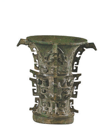 由一名叫何的宗室贵族所作的这件祭器重14.6公斤,通体四道镂空大扉梭,威风凛凛。整体以雷纹为底,腹部及圈足饰有高浮雕的卷角饕餮纹。最为关键之处是内底铸有铭文12行,共计122个字,记述了周成王营建成周并举行祭祀的一系列活动。其中第七行起首四字“宅兹中国”,是目前所知最早出现的“中国”一词。何尊的地位由此一举跃升为最为知名的青铜器之一。