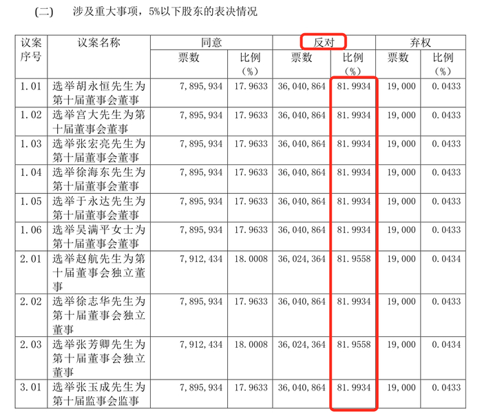 从公告看,第十届董事会、监事会选举投票中,5%以下股东的反对率是较高的。