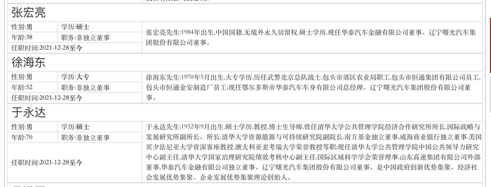 天眼查显示,宫大在华泰汽车集团参股的新力泰新能源有限公司中还任职监事。