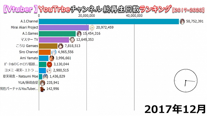 绊爱于2016年11月投稿首个视频后,新人也来势汹汹。于2017年开始活动的辉夜月、未来明、电脑少女小白、Nekomasu(狐娘大叔),播放量、订阅数迅速增长,他们与绊爱一起被称作“Vtuber四大天王”。因此“四大天王有五个”的梗,在V圈流传甚广。