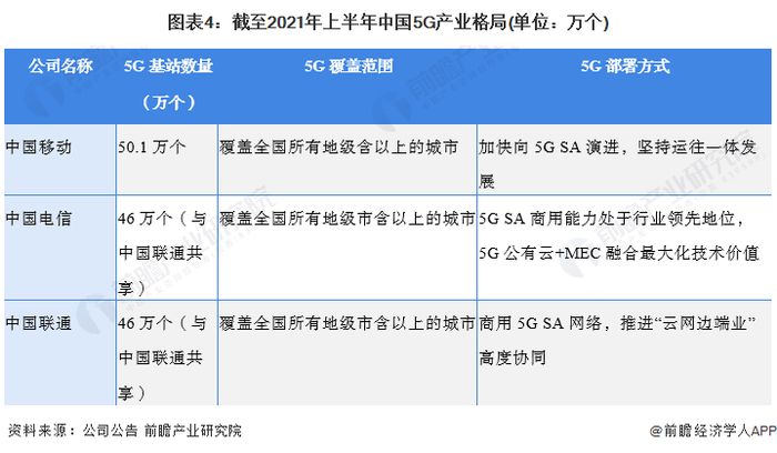 截至2021年上半年,在5G网络建设方面,中国移动相关投资共计502亿元,累计开通50.1万个5G基站;中国电信与中国联通开通5G网络共建共享,在用5G基站达到46万个,5G网络年内将覆盖至县城和发达乡镇;中国联通5G网络已覆盖地级以上市区、发达县城核心城区,4G共建共享范围持续扩大。