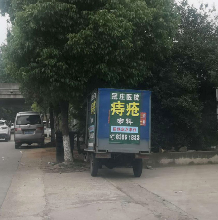 当事人在宁海县梅林街道塔山工业区和西店镇王家村的营运三轮车上发布广告,包含“冠庄医院 痔疮 专科 医保定点单位 83551833”等内容。上述医疗广告未取得《医疗广告审查证明》。