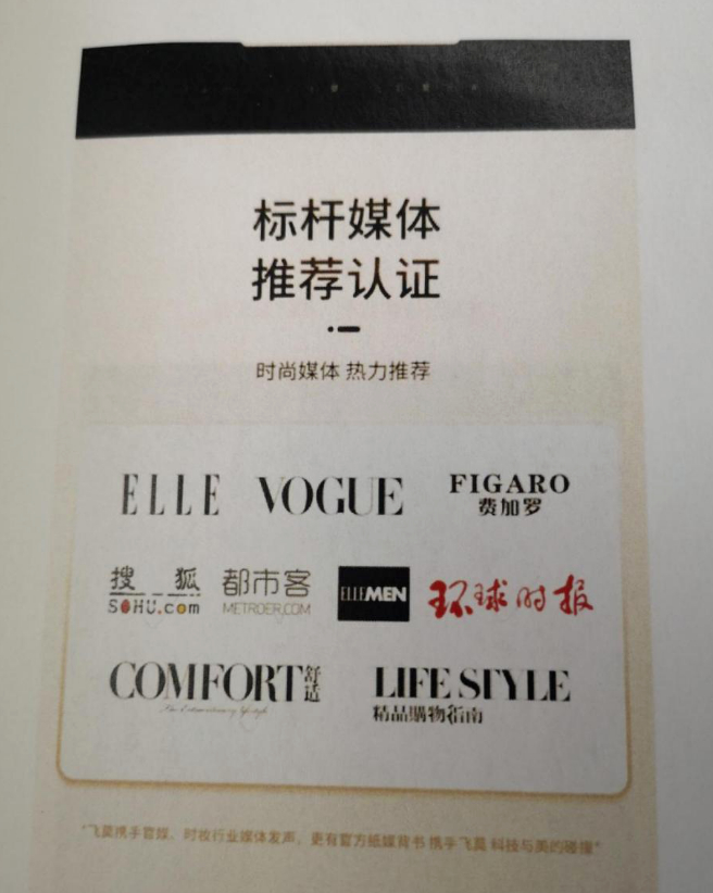 当事人在微信公众号上发布推文,宣传“HIMESO水光美容仪”产品,包含“……皮肤科医生临床结论:使用21天后,33位受试者皮肤色度L*值(祛黄)力提升83%,肤色提亮65%,细纹减少32%,色斑减少38%……”等内容。在天猫和京 东店铺飞莫美容仪产品宣传页面,含有“标杆媒体 推荐认证…… ”等内容。当事人无法提供以上内容的有效证明材料,宣传内容与实际不符。