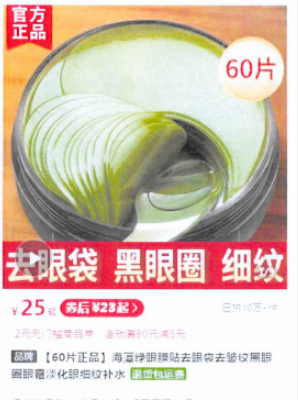 当事人在拼 多 多店铺销售一款德德维芙牌紧致明眸海藻眼膜,产品宣传页面包含“去眼袋去黑眼圈”等涉及产品功效的宣传用语。经查,该眼膜为普通化妆品,配方中不具备“去眼袋去黑眼圈”功效的成分,当事人也无法提供相关证明文件。