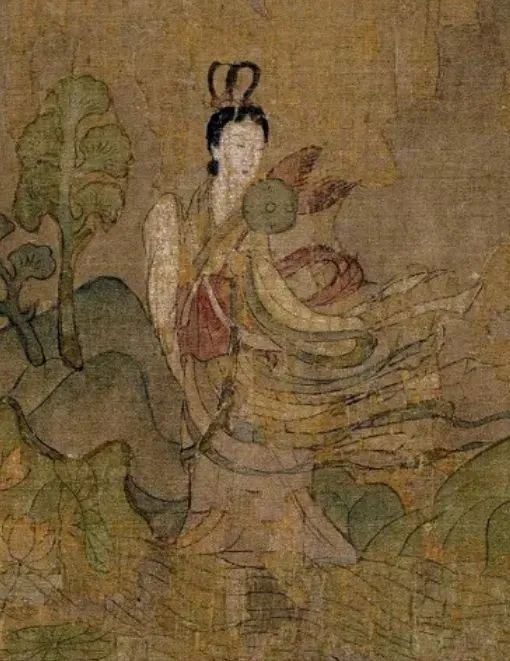 在表现洛神的体态之美上,顾恺之却不直接画洛神的身体,而是以衣纹的线条和裙带的飘逸来隐喻。