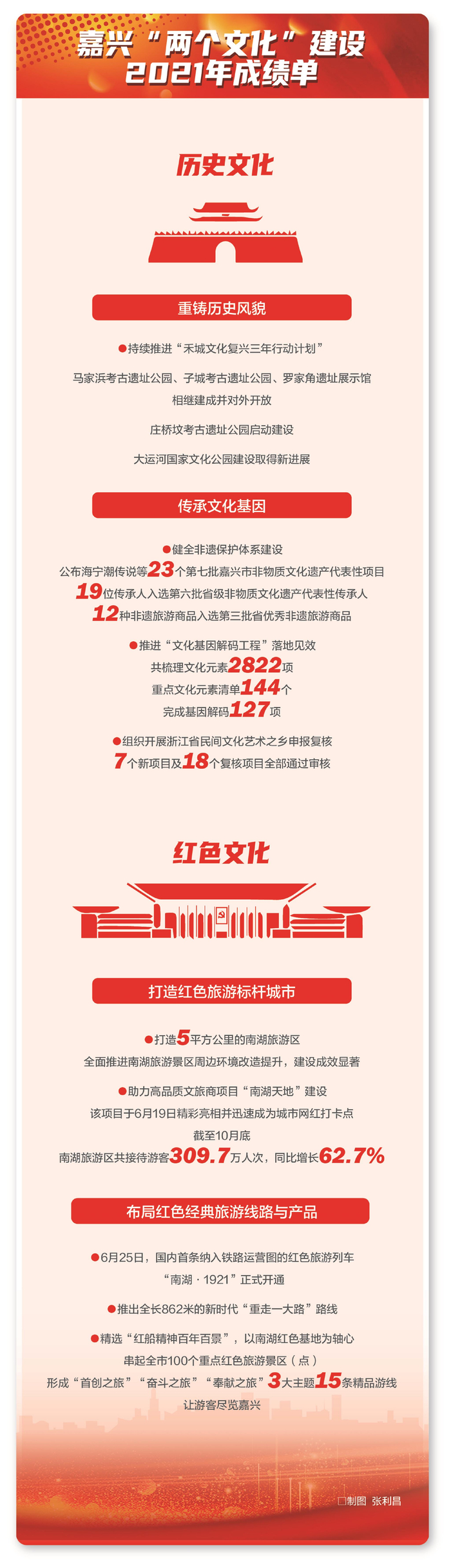 扬帆奋进正当时,砥砺前行谱新篇。党代会话音刚落,3月6日,嘉兴专门成立了“古城文化核心区建设专班”,加快推进打造禾城文化新地标;落实做优做精新时代“重走一大路”红色旅游精品线路,将铿锵的足音化为最高效的贯彻,以奋斗的脚步扛起最有力的担当。