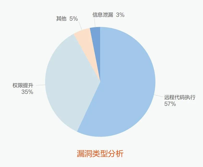 从在野0-day漏洞所属漏洞类型分布来看,2021年占比最多的是远程代码执行漏洞,其次是权限提升漏洞。