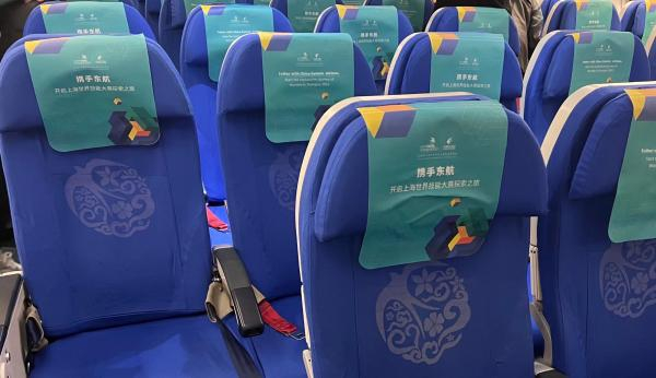 步入机舱,更是惊喜连连。首先映入眼帘的是一排排整齐划一的世赛专属座椅头片,“一技之长,能动天下”的世赛口号以中英语双语的形式在客舱行李架和小桌板上都有生动展示。不仅如此,“技能梦想号”主题飞机还为旅客特别定制了富含世赛元素的特色餐食,印有世赛吉祥物的巧克力被制作精美的玫瑰花所环绕,小蛋糕上的鲁班锁图案与彩绘飞机相互呼应……目力所及,点滴细节处都透露着东航主题飞机的设计巧思。