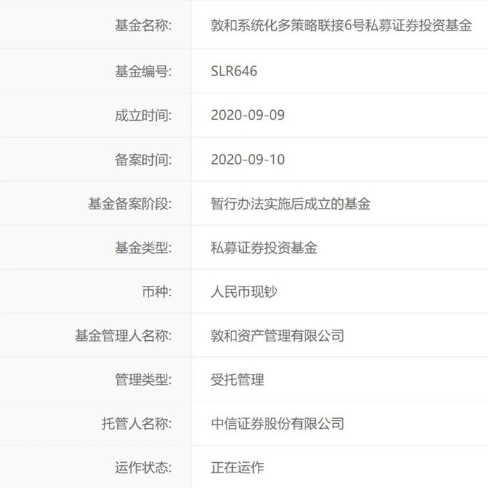 资料显示,敦和系统化多策略联接6号基金成立于2020年9月9日,采取复合策略,目前运作有一年半左右时间。据了解,敦和系统化多策略系列产品通过偏量化的方式来执行交易,该产品既交易股票,也交易债券、商品;有相对稳健的防守型策略,也有中场型和进攻型策略。