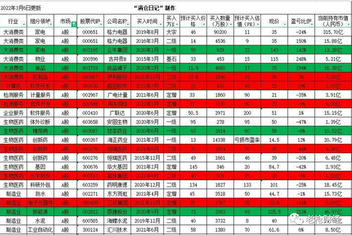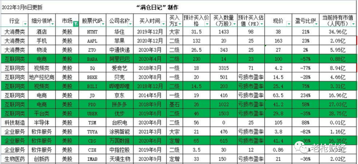 以下是网友整理的截至2022年3月6日高瓴资本在A股、港股和美股市场的部分投资盈亏情况: