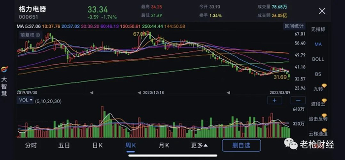 而且,当时有网友算过,以60%的质押率计算,就算珠海明骏把所有持有的9.02亿股格力全都拿来抵押,大概最后可以支持格力电器的股价极限为31.92元 。 而2022年3月9日盘中,格力电器股价已经一度跌破31.92元, 最低跌到了31.69元 。