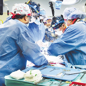 1月7日在美国巴尔的摩的马里兰大学医学中心拍摄的移植手术现场。 新华社发