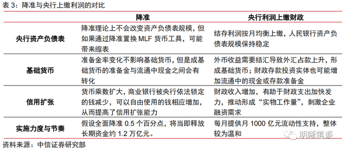 流动性支持增加,且有助于银行降低负债成本,但不影响央行全年降准降息安排。正如前文所分析,央行上缴利润配合财政支出将对流动性形成补给。除此以外,对于商业银行来说,直接从央行获取资金的成本以1年期MLF利率来看是2.85%,但如果通过财政支出进入存款账户,目前一年期定期存款的利率是1.5%,对比之下,负债成本也将有效走低。有投资者担忧这种流动性投放方式可能会关闭了降准降息窗口,但我们认为央行缴利润并不会带来这样的干扰,因为:①央行上缴利润是财政非税收入的渠道之一,本质上更偏向于财政政策,在财政总支出的规模基本确定后,只是丰富形式略超预期,但是效果还要看执行。②根据央行“按月均衡上缴”的表述来看,平均每个月上缴1000亿,即便立刻完全形成流动性投放(实际上可能存在时滞),对比部分时点OMO或MLF操作都达到千亿级水平来看,对银行负债压力缓解有限,更难以因此影响央行降准降息的节奏;③央行货币政策主要目标还是降低实际贷款利率,财政支出可以刺激企业端的融资需求,但难以直接引导融资成本下行,最终仍需要通过降准和降息政策来实现实际贷款利率的压降。