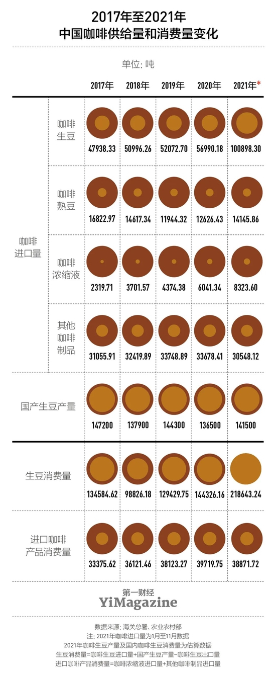 疫情暴发以来,消费一度被视为提振中国经济的利器,针对咖啡相关产业的投资热情更是空前。2020年5月至今,几乎每个月都有新咖啡品牌披露新融资,截至2021年11月,中国当年的咖啡生豆进口量更是突破了10万吨大关,相比去年同期接近翻倍。