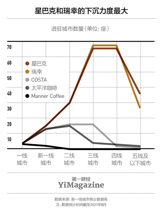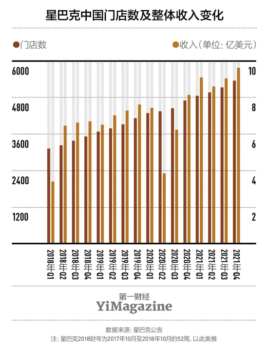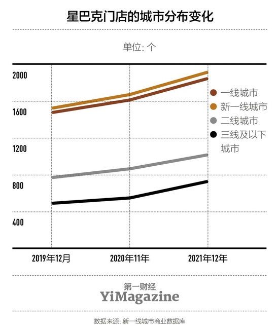 “我们正在加快门店拓展步伐。目标是到2022年年底,在230个城市运营6000家门店。……我们不但在一二线城市继续拓展市场,同时向更多的地级城市进军,并延伸至县级市。”2021年年底接受《第一财经》YiMagazine采访时,星巴克中国披露了激进的门店发展和下沉策略。