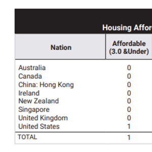 住房市场按支付能力排名(由易至难)。数据来源:Demographia