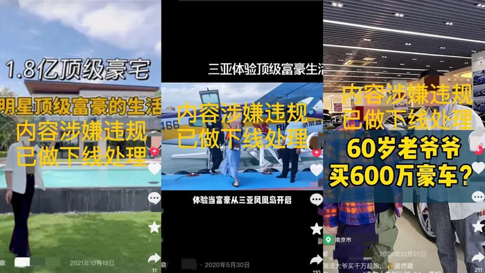 这类视频,要么是60岁老爷爷买昂贵跑车,要么年轻美女展示顶级豪宅、坐私人飞机,总之是不同人以不同方式过分夸耀自己和他人资产,其夸张程度令人大为震惊。