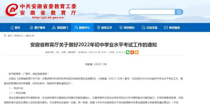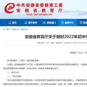 安徽省教育厅发布2022年“中考方案”