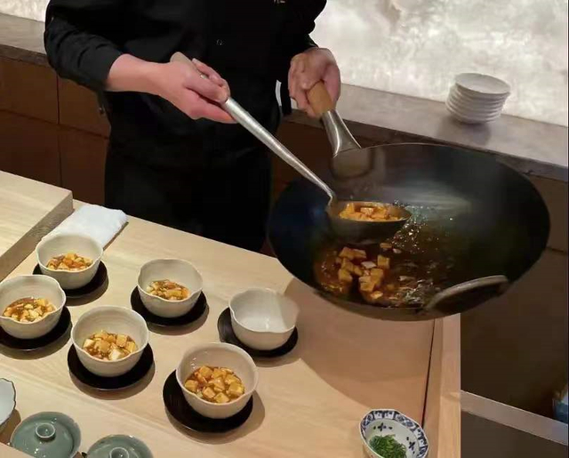 一锅麻婆豆腐在上桌前被分进一个个小茶碗的画面,真是应了那句“我不理解但我大受震撼”,也难怪食客们会觉得像是在喂狗了。