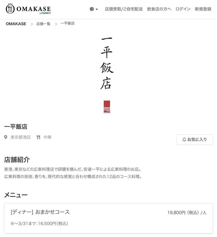 这家おまかせ中餐馆“一平饭店”主营粤菜,从菜品的宣传图和日本美食点评网站食べログ上的照片来看,做的也是小份量的精致中餐。