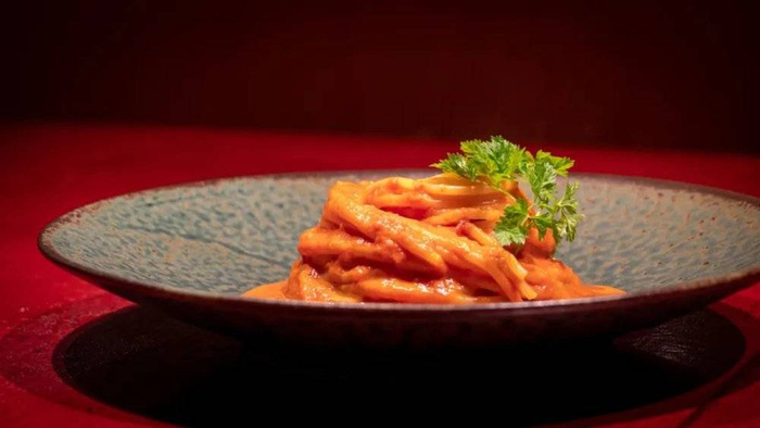 而另一道竹笋清汤也让这位意大利人感到好奇,“这个是不是国宝大熊猫吃的竹笋?”意大利人问,主厨用中文回答,露卡翻译,这种交流氛围让露卡认为头灶是有价值的。至于那两根上海青,露卡说有种别样的甜味,“反正超市找不到,不然我天天去买”。”