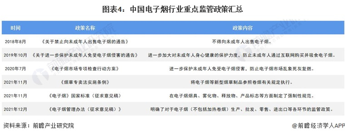 随着电子烟市场的快速发展,我国对电子烟的政策监管也在逐步加强,尤其在未成年人保护方面出台了一系列监管防范政策。2021年以来,电子烟等新型烟草正式纳入烟草体系监管、电子烟国家标准的制定以及电子烟管理办法的意见征集,国家对电子烟的监管达到了一个新高度。