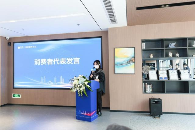 消费者代表杜女士在发布会现场发言,她提到:“贝壳签约服务中心以专业化、标准化的作业让消费者体验到安心、便捷、温暖的品质服务,是值得信赖的品牌。”