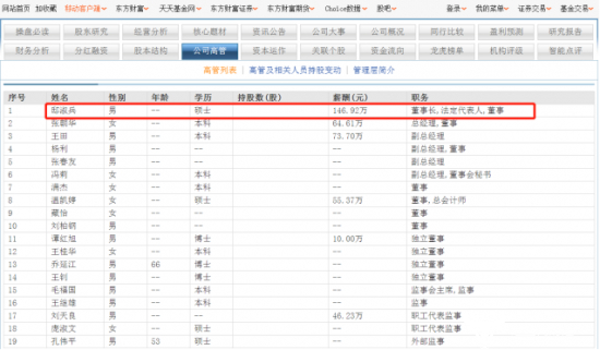 东方财富网显示,现任北京同仁堂董事长的邸淑兵年薪146.92万,未持有公司股份。