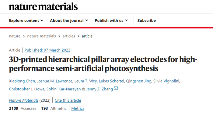 该团队使用3D打印技术生产由金属氧化物纳米颗粒制成的电极,这些纳米颗粒被排列成密集的支柱组,就像一个小城市。这座城市则是蓝藻细菌的栖息地,蓝藻以极高的效率产生电力,以至于该系统将可从蓝藻中提取的能量增加了一个数量级以上。研究成果已于近期发表在了《自然材料》杂志上。