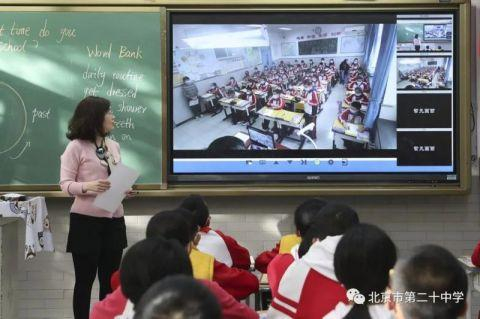 “双师课堂”授课的三位二十中学老师分别是海淀区数学学科带头人陈娟老师、海淀区英语学科带头人苗禾老师、海淀区语文骨干教师阚琼老师。三位老师与对应的清河中学教师认真沟通、备课,并经过试讲熟悉各种操作,最终呈现了令人满意的“双师”授课效果。陈娟老师说:“双师课堂增进了两个班级学生同伴之间的亲切感,两个班级的学生表现欲、投入度都增强了。当对方学生回答问题讲得好的时候,这边的学生自发报以热烈掌声。”陈老师还建议“双师课堂”的软件能够实现在主屏幕显示对方黑板和大屏的图像,从而达到更好互动。