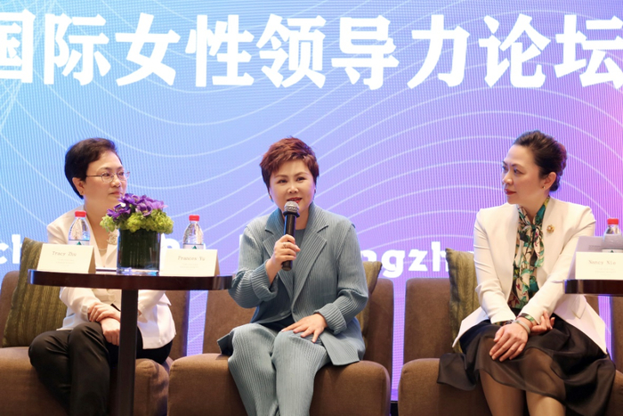 安利(中国)总裁余放(左二)与嘉宾探讨女性领导力