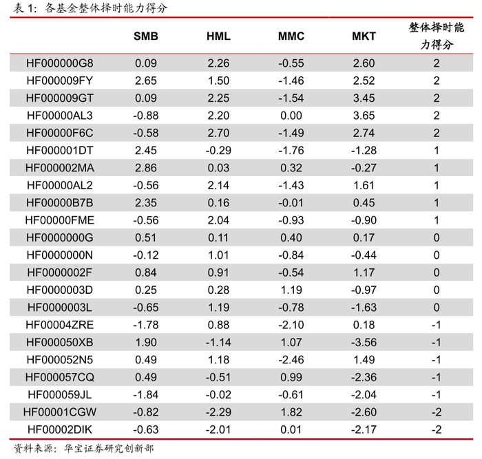 以下我们列举某期不同择时能力得分的标的。