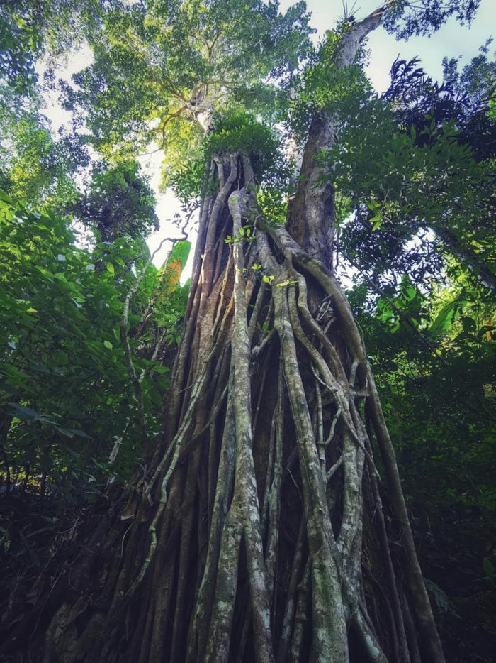 一条水质明净的莱阳河流过这片雨林,河谷两岸树植郁郁葱葱。有高耸入云的望天树,有两棵树缠在一起的绞杀树,有繁衍了一百多万年的天料木,仰头望天,还有那仿佛“倒置”的树枝,从天而降。游览之间,尽是平时难得一见的雨林景象。