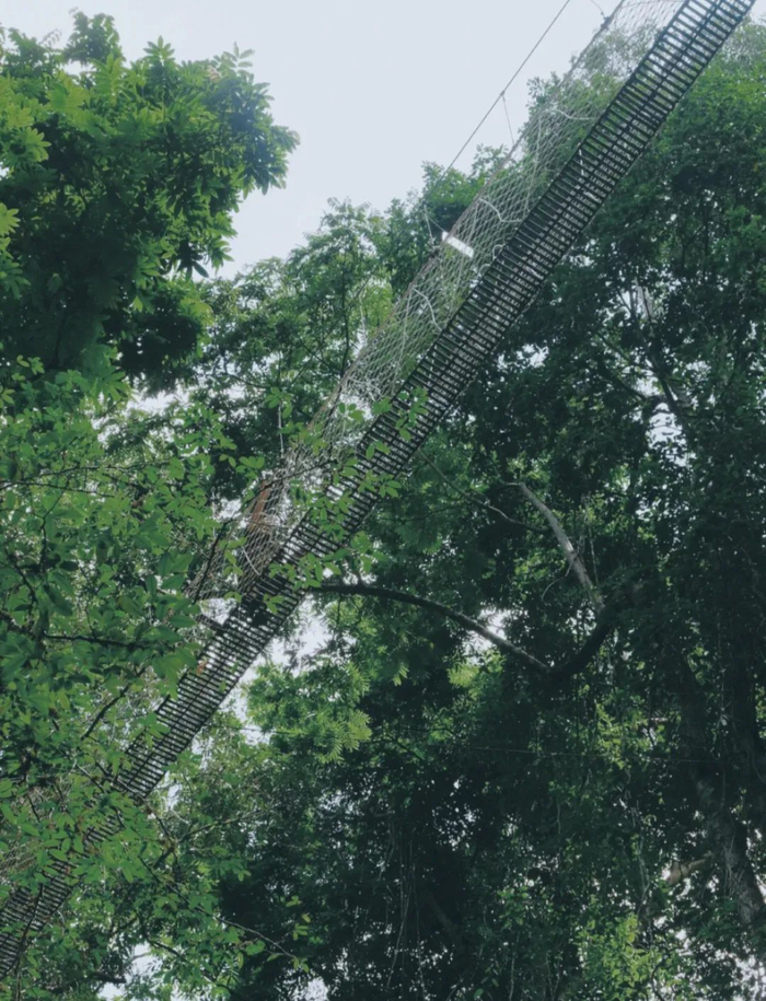 如果想近距离的观赏这些奇特的植物树木,可以参加园区内的丛林飞跃项目,戴着滑索横穿热带雨林。将自己想象成猿人泰山,一会儿从高空攀索而降,一会儿拨开挡住视线枝条,去寻找那仿佛不存在的前行道路。在密林深处,你或许还有开小差的时间,可以看到悠然亭立的鹤,自然觅食的鹿、在古藤上顽皮荡悠的猴,偶尔还能看见国家一类保护动物野牛和犀牛的身影。如果走完这一趟碰巧遇上哈尼族的原始狩猎活动,兴许还能吃上他们刚刚烤完,新鲜打来的猎物。