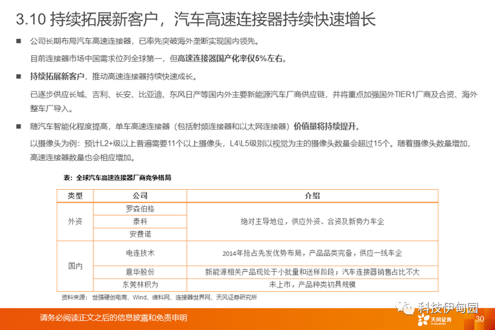 风险提示:下游手机行业景气度不及预期、自动驾驶进度不及预期、汽车客户放量不及预期、海外客户拓展进度不及预期、对国内及全球汽车高速连接器市场测算是基于一定前提假设,存在假设条件不成立、市场发展不及预期等因素导致测算结果偏差。