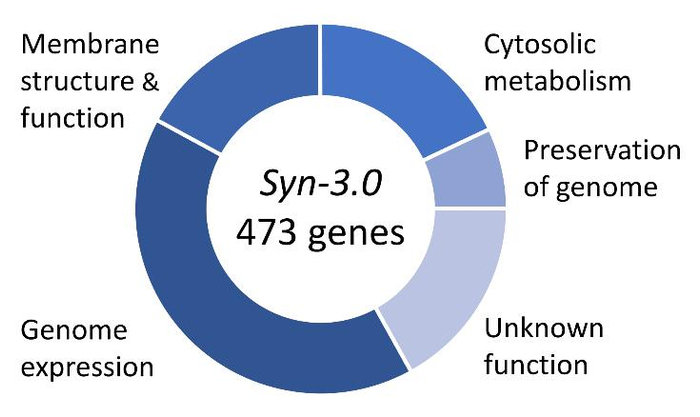 文特尔为他创造的“人造生命结构”起名“辛西娅”(Synthia),意为“人造儿”。后来,文森特为了探索人造生命的极限,不断地删减基因,一次又一次地重复上面的步骤,来寻找细胞生存所必需的基因,以及生命所需最简单的基因组。最终,他们在2016年创造出了仅含有473个基因的Syn3.0。